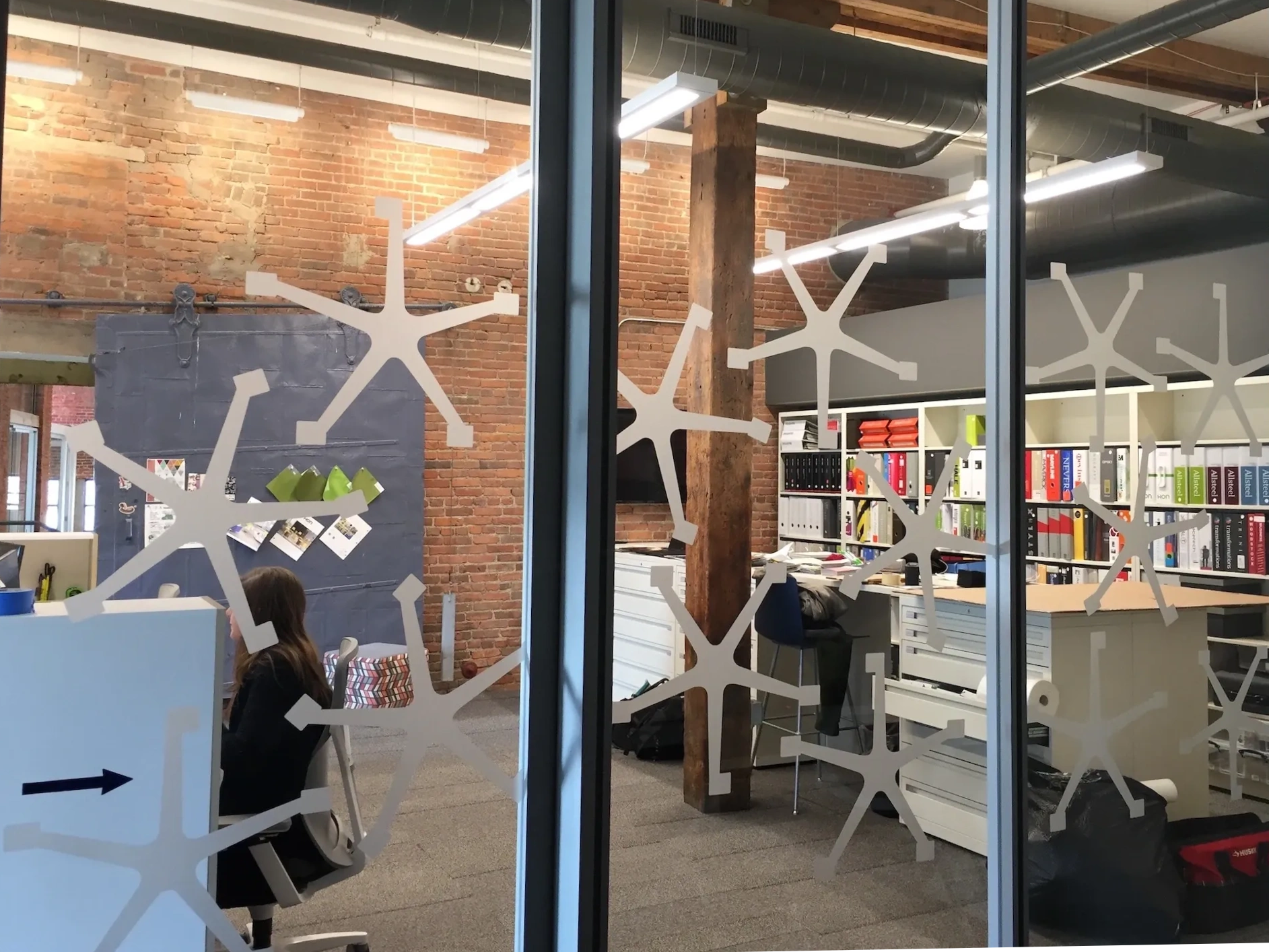 This corporate office interior is both a dynamic workplace and a furniture showroom. Oversized graphics become brand billboards that define the space while branded elements and interior signage are displayed in key areas of function and scenic view. Multiple office locations utilized this tenant fit-out design.